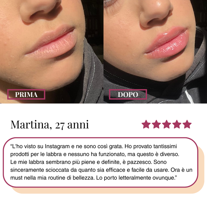 Volume visibile in 5 minuti. Labbra più piene che durano 4+ ore. Acido ialuronico che idrata mentre volumizza. Zero bruciore insopportabile, solo leggero formicolio.